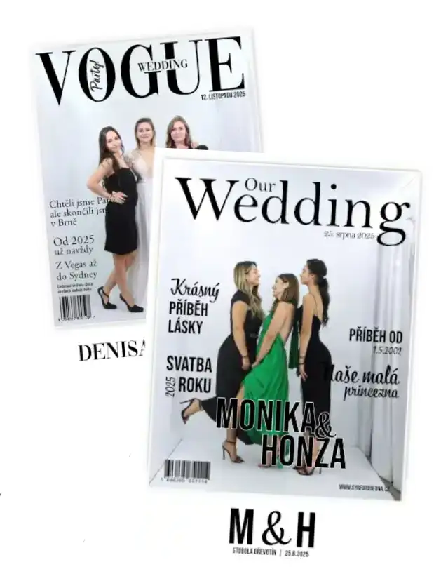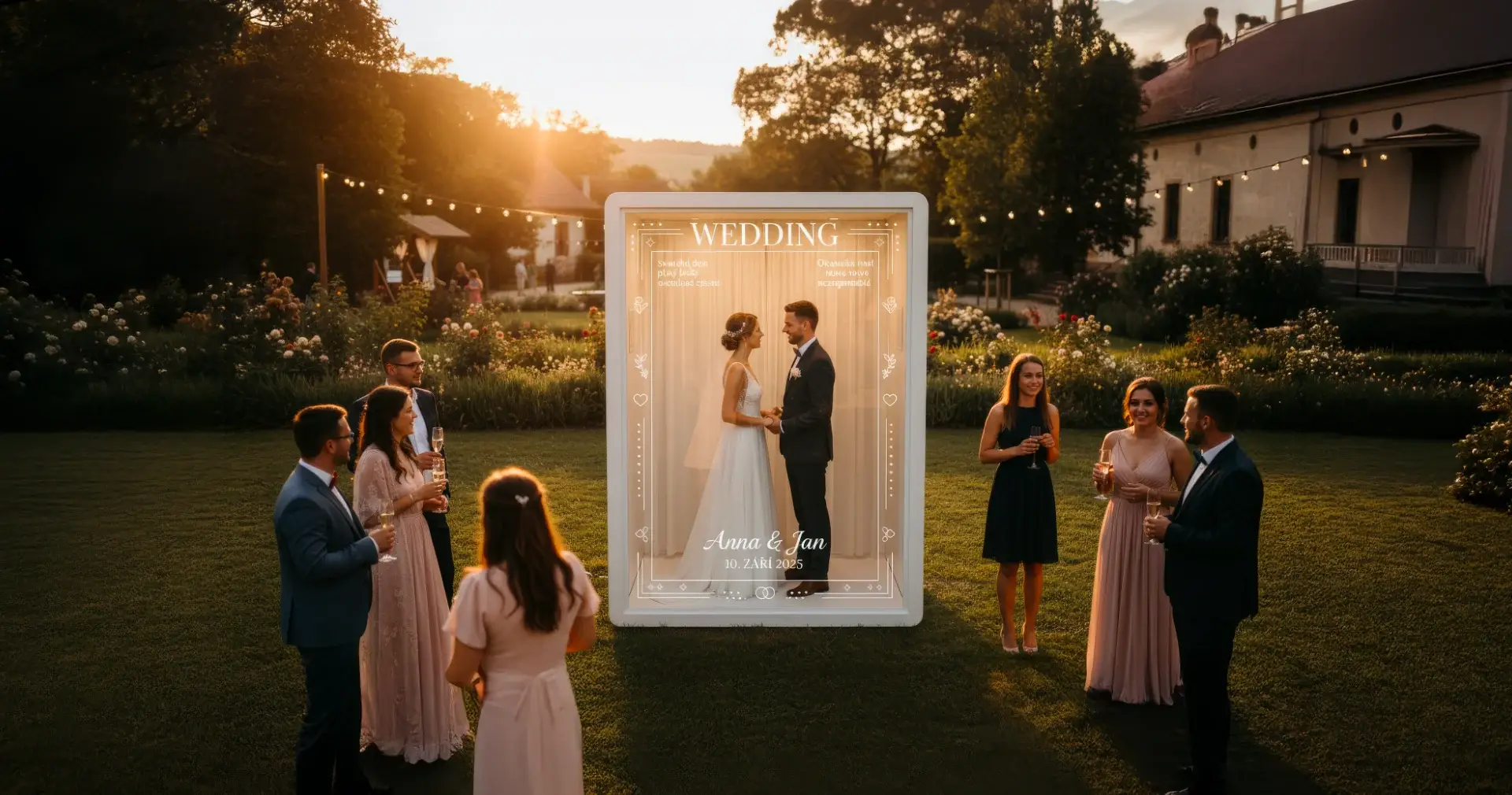 Fotobox vytváří na svatbě elegantní scénu, kterou vyladíme přesně podle vašeho dne — od personalizovaného polepu skla až po jemné detaily uvnitř. Díky tomu vzniknou momenty, které mají příběh.